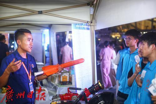 科普夜市上,消防救援人员向观众展示专业救援设备。
