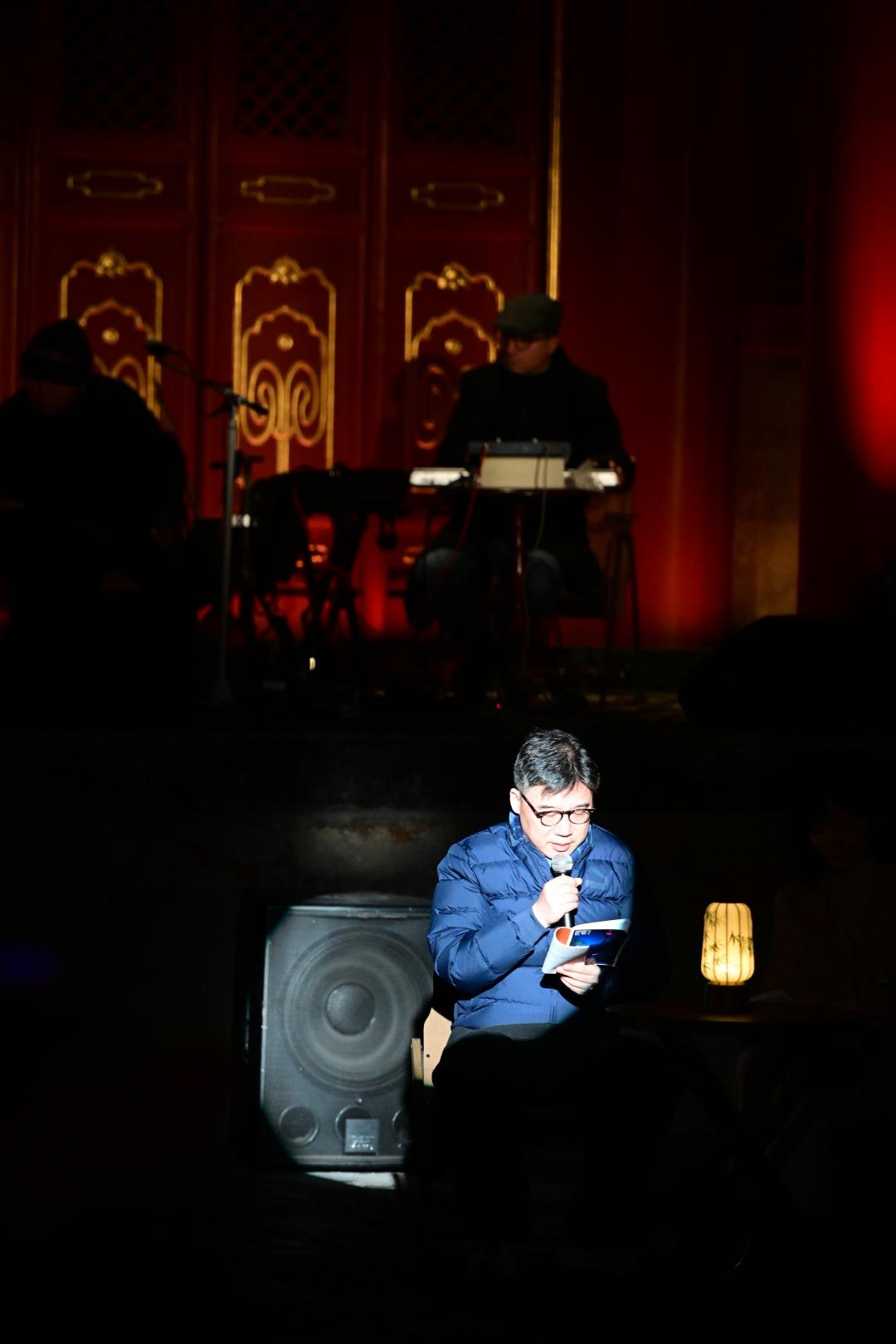 古朴的庭院中,《夜雨寄北》的故事与建筑空间的历史氛围相互呼应,古刹、夜晚等环境亦与李修文小说中融合的志怪、说书、戏曲等传统元素相得益彰,为观众营造出一种穿越时空的奇妙体验。10月18日晚,由花城出版社、花城文学院与朗唐请工作室联合主办的李修文《夜雨寄北》文本剧场在北京观中古建筑群落内上演,这场融合文学、戏剧与音乐的独特演出通过戏剧性朗读、音乐呈现和环境营造,将作家李修文的小说《夜雨寄北》转化为一场多维度的艺术体验,为观众带来一个沉浸式的文学现场。