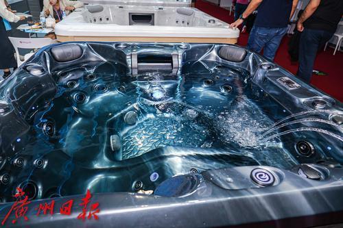 在展馆中的一个区域,许多浴缸展品注满水现场展示功能