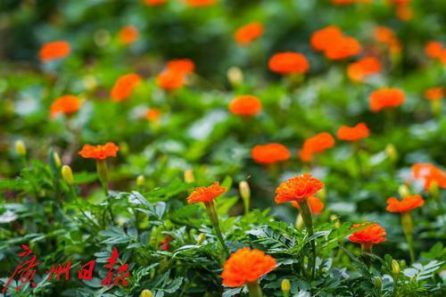 10月23日,虽然天气预报显示气温即将回升,但广州的天气依然有几分凉意,带着秋天的感觉。在一片清凉之中,广州街头却有不少鲜花正值盛开,四季都是花开日,不负花城之名。