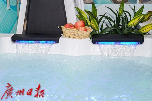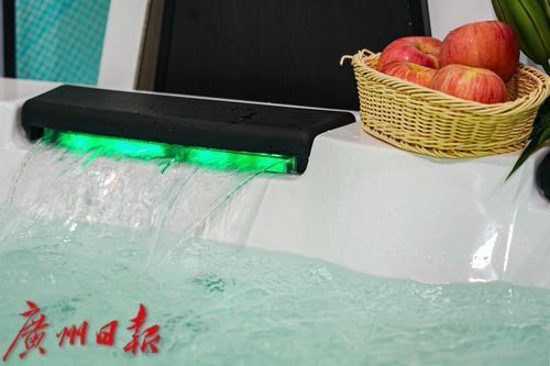 “这款自带智能控制水力与氛围灯的按摩浴缸,在欧美与中东地区都很受欢迎。”广东圣罗兰卫浴科技有限公司出口部经理黄家明告诉记者。