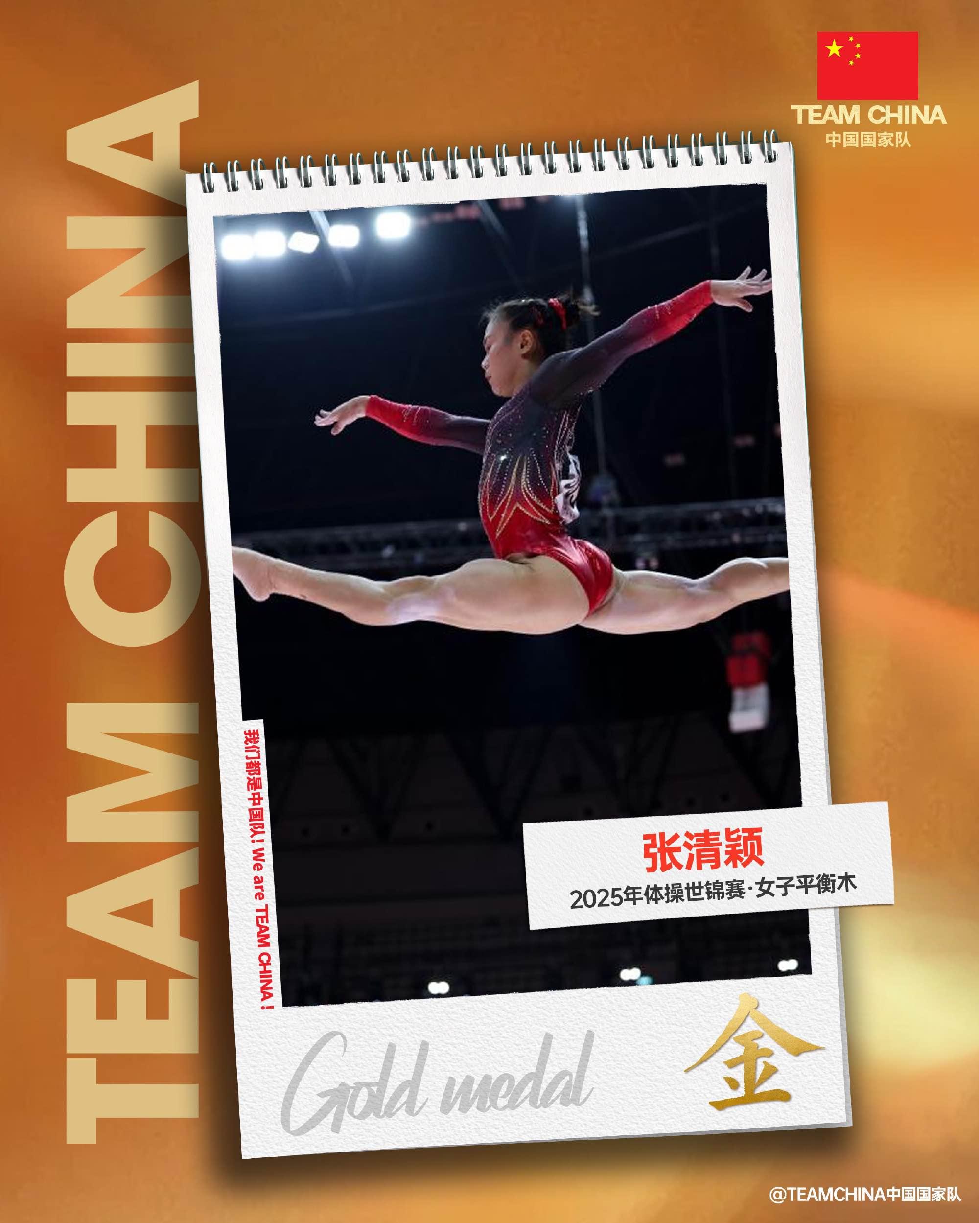 北京时间10月25日,2025年雅加达体操世锦赛进入最后一个比赛日的争夺。在女子平衡木决赛中,资格赛排名第一的中国选手张清颖最后一位出场,她延续资格赛中的良好状态,以15.166分夺得冠军,帮助中国体操队收获本届世锦赛第二枚金牌。