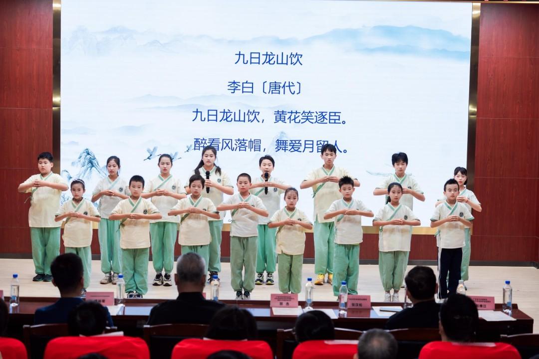 吟诵会以“诗章·诗风雅韵”拉开序幕,用经典诗文奠定文化基调。佛山市顺德区美辰学校率先登场,吟诵《孝经·开宗明义章第一》,传递传统孝道文化;广州市黄埔区怡园小学则带来“经典诵读+武术”的创意组合,《弟子规》诵读与集体武术《怡武会友》相呼应,展现少年学子对传统文化的多元演绎。此外,吴天昊、陈丽婵等四位表演者联诵杜牧《九日齐山登高》、王维《九月九日忆山东兄弟》等四首重阳主题诗词,串联起不同的重阳情思。