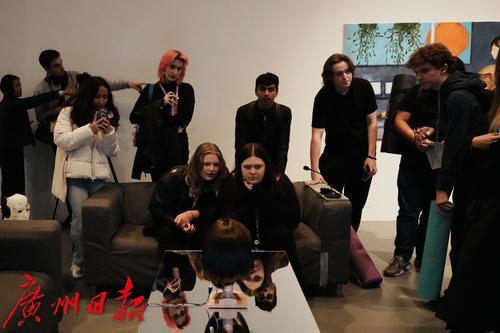 展览现场,英国年轻人对Zhongjing 2.0十分好奇,正在与其互动。