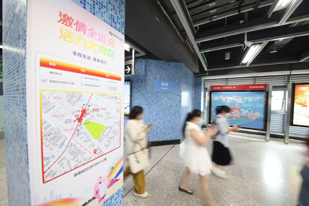此外,为营造浓厚的赛事氛围,4号线、13号线相关车站已增加全运会信息播报和宣传海报,深圳北站、福田口岸站、深圳湾口岸站上线全运会主题打卡互动点,市民中心站、少年宫站、上梅林站等9个车站的社区画廊推出“全程全运 港铁同行”主题海报,让市民和旅客在出行中感受体育盛事的热情与魅力。