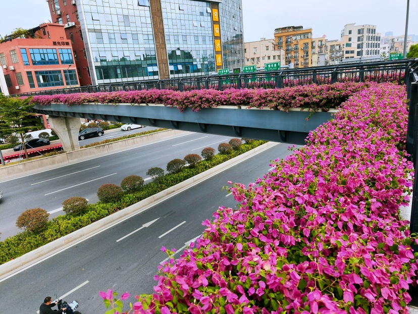 如何让数以万计的花卉在赛期里保持“巅峰状态”?“简单来说,我们就像给植物制定了一张严格的‘开花时间表’。”番禺区城市管理和综合执法局相关负责人用了一个生动的比喻。他进一步介绍,以簕杜鹃为例,技术人员会在目标开花前40-50天进行精准修剪,统一催生新枝;再通过巧妙的“控水施压”,让植物产生危机感,优先将养分用于开花繁殖;最后辅以高磷钾肥“加餐”,确保花量大、花色艳。通过这套组合拳,他们成功引导核心花卉在11月全运赛期达到盛花状态,确保关键区域的花卉盛开率持续超过90%。“我们的目标,就是实现‘无缝衔接’的观赏效果,让‘空中花廊’的盛景贯穿整个赛会期间。”该负责人表示。
