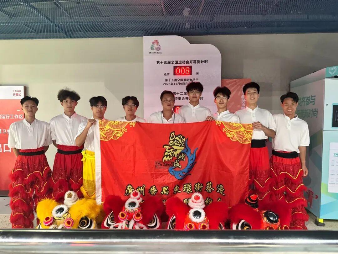 在这片方阵中,来自番禺区东环街蔡边精成龙狮队的十名少年,以矫健的身姿圆满完成了演出,将他们用汗水铸就的青春荣耀,写进了醒狮文化传承的长卷中。
