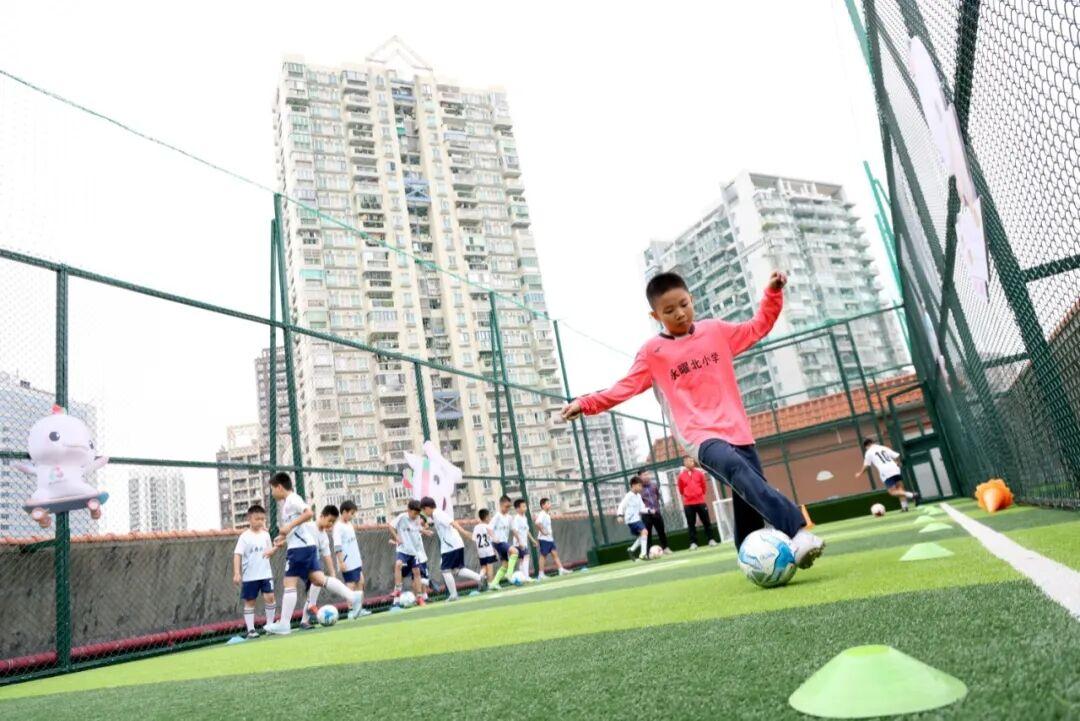 同样向天空“索要”空间的,还有永曜北小学的楼顶天台足球场。这片铺设着人工草皮的空中运动场,不仅是学生们日常体育教学和课外活动的重要场所,更成为了孩子们放飞体育梦想的起点。每当课间或放学后,这里都充满了孩子们的欢声笑语和奔跑的身影,实现了土地集约利用与青少年体育发展的双赢。