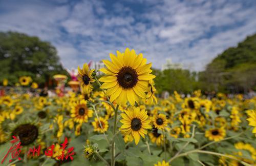 “秋日小太阳”向日葵绚烂盛放,为广州的秋天增添一道美景的风景。