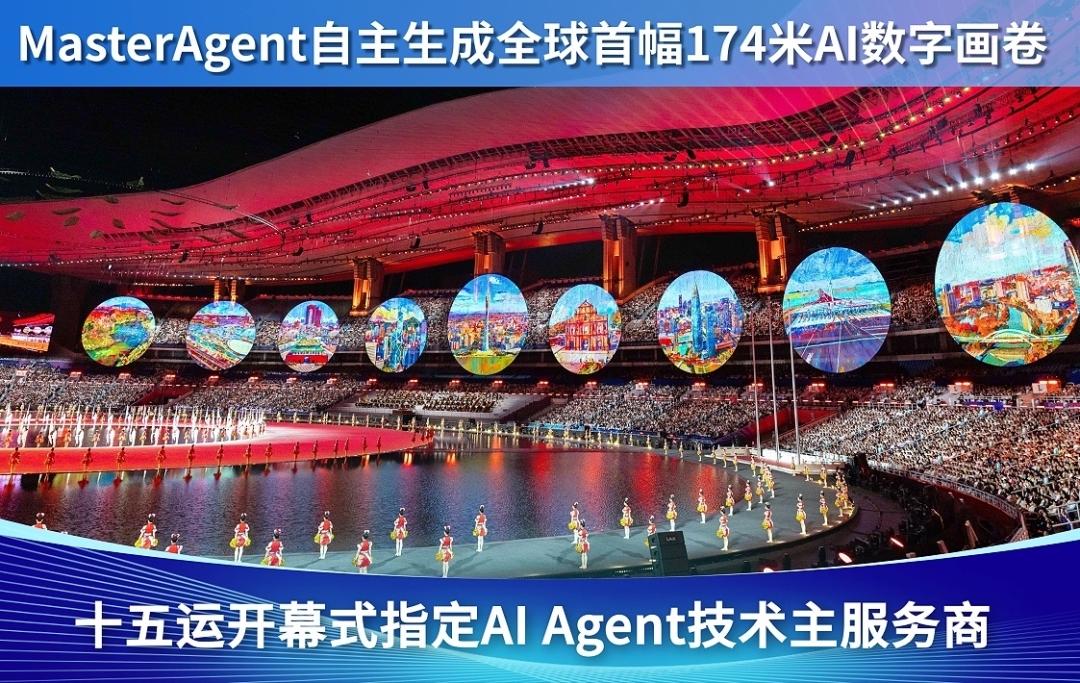 自今年以来,MasterAgent已多次代表中国AI创新成果登上重要舞台:7月在上海世界人工智能大会上入选“中国AI Agent商业落地TOP20”,成为国产智能体代表;11月在第十五届全国运动会开幕式上,MasterAgent以自主生成174米AI数字画卷的方式亮相,为观众呈现出科技与艺术融合的震撼景象。这幅画卷由2000余个智能体协同完成,AI独立创作比例超过99%,展示了多智能体集群在文化艺术领域的创新潜能。