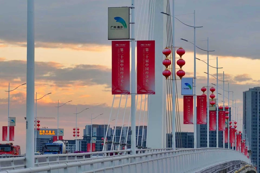 南沙街头,一幅幅鲜红的道旗迎风招展,商场内部、城市广场、建筑外立面……论坛的视觉标识无处不在,构成了一道道流动的风景线,将盛会的氛围感直接拉满。