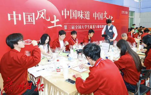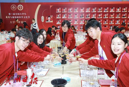 轻摇高脚杯,看、闻、品,淡淡的葡萄酒香在现场弥漫,一张张青春脸庞神情格外专注……11月15日,第三届全国大学生葡萄与葡萄酒科学文化节系列活动“最受大学生欢迎的中国风土葡萄酒”品鉴大赛在华南农业大学举行。来自北京大学、清华大学、上海交通大学、中国农业大学、西北农林科技大学、香港大学、澳门大学、华南农业大学等30多所高校学生代表组成“百人大学生评委团”,对来自70家优秀中国本土葡萄酒企业选送的225款代表性风土葡萄酒进行品评。