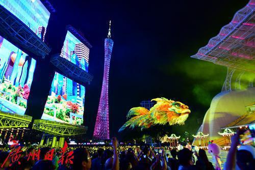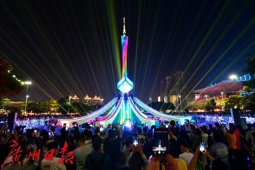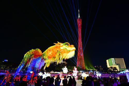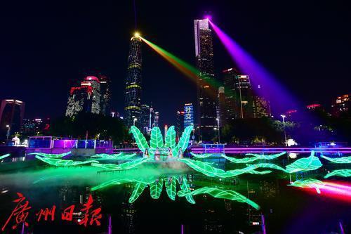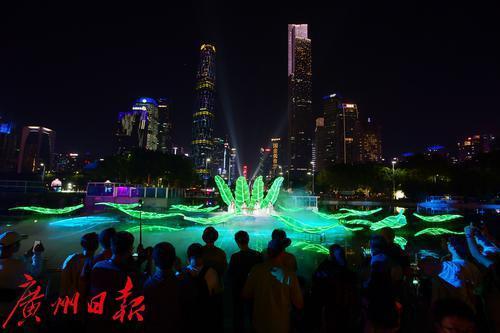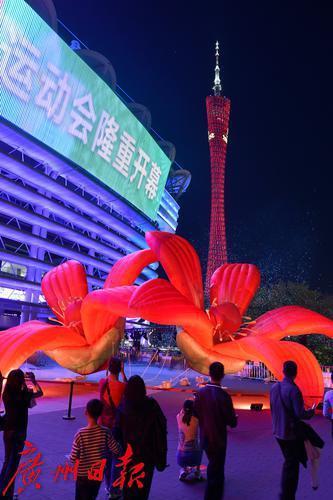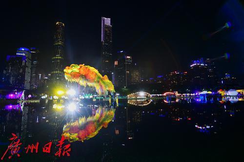 11月16日晚,2025年广州国际灯光节开幕,亮灯仪式上,曾在十五运开幕式上亮相、刷屏全网的“大鳌鱼”缓缓“游进”灯光节,引来观众阵阵欢呼。除大鳌鱼外,芭蕉叶、木棉花等经典装置也“华丽返场”。