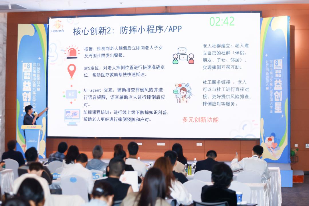 近日,“益创星·2025”深圳市南山区第八届全国大学生社会创新项目大赛决赛在南方科技大学成功举办。经过激烈角逐,从全国245个申报项目中脱颖而出的18支大学生团队现场竞演,最终决出优胜。来自华南师范大学的“青藤拾忆,耆智永传——打造AI时代长者记忆存续新模式”项目,以及香港科技大学(广州)的“自在月行Free Period经期应急盒和卷状卫生巾”项目,分别摘得“益”赛道与“创”赛道的金奖。