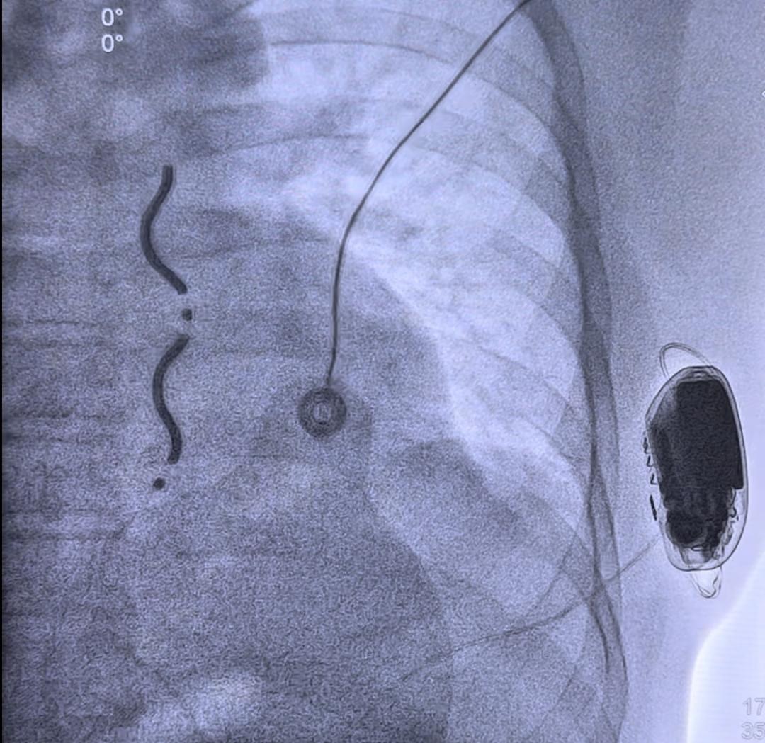 在麻醉团队和心外科团队的协助和配合下,EV-ICD植入手术顺利完成,术后患者胸骨下电极稳定,电学参数正常,除颤测试通过。患者于次日转回普通病房,优化各项参数,恢复良好。
