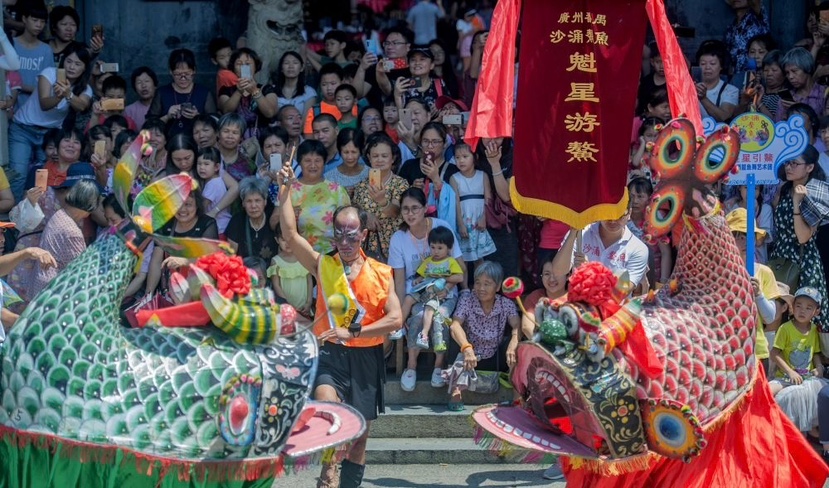 作为鳌鱼文化的故乡,番禺的古村街巷、民俗活动、传统工艺中处处镌刻着鳌鱼印记:“中国民间艺术之乡”沙涌村传承鳌鱼文化600余年,沙涌鳌鱼舞于 2008 年列入广东省非遗保护项目;“中国历史文化名镇”沙湾古镇的鳌鱼灯习俗源远流长,鳌山古庙群流传着与鳌鱼相关的美好传说,木雕、灰塑、砖雕等传统工艺品中也常见鳌鱼元素,鳌鱼已成为融入番禺人生活的精神图腾,更在十五运会开幕式上惊艳四座,向世界展现了岭南文化的独特魅力。