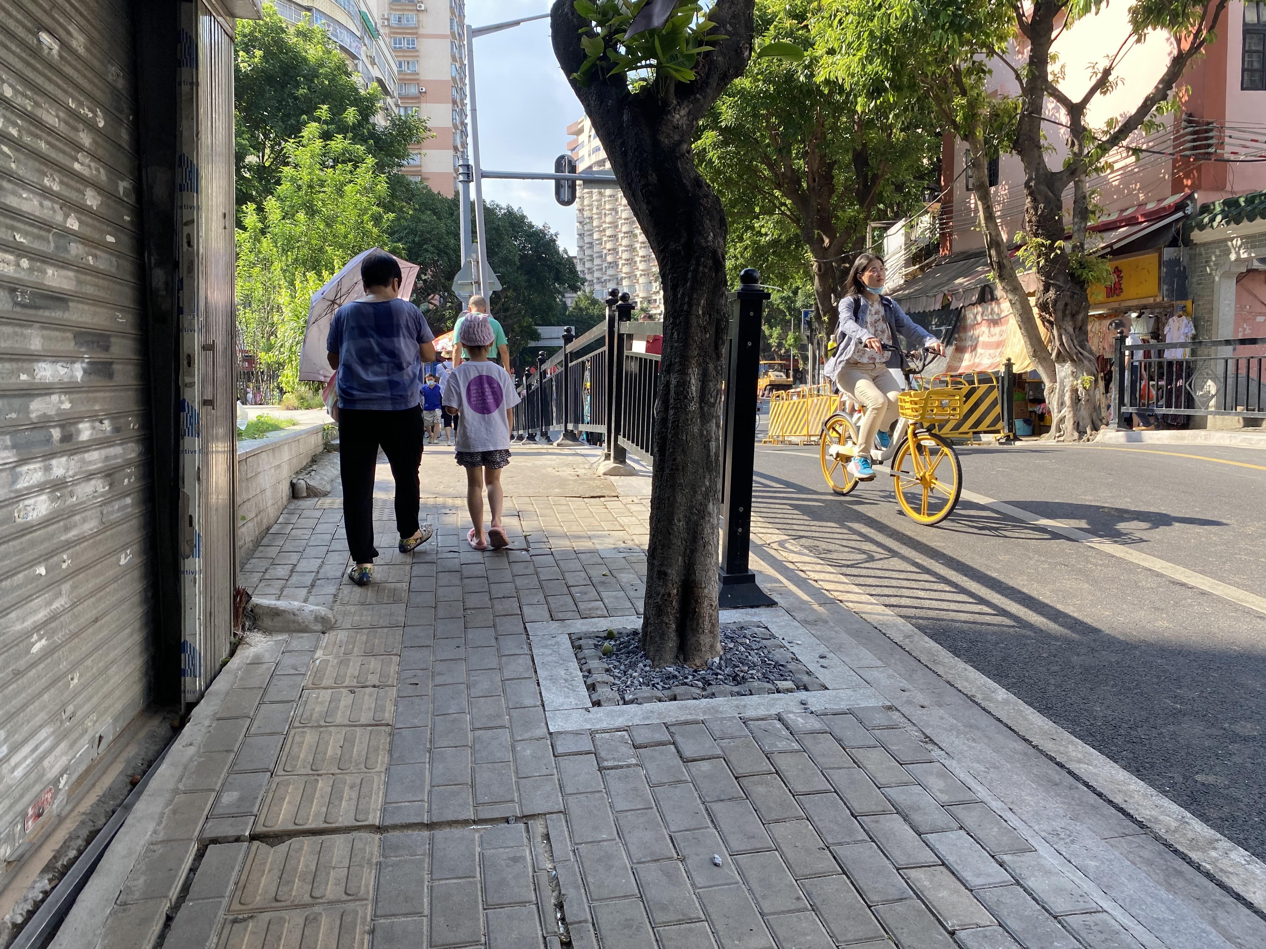 纵贯西关的南北“大动脉”康王路便是前两年完工的一条。康王路分北、中、南三个路段,南接内环路,联通沙面、西堤、文化公园等热门景区,中段联通上下九、华林寺、陈家祠等,北接东风西路,可以说站在康王路与每一条东西向道路交汇的路口,每个方向都能通往荔湾的一个历史文化街区。“道路改造时,结合市民与游客的日常需求,我们对康王路全线非机动车道进行优化设计,增设非机动车停放区,并安装机非分隔护栏和人行护栏,同时,对人行道铺装和沥青路面,为市民游客到周边观光打卡提供安全与便利。”荔湾区更新中心工作人员黄为光表示,他们还在康王南路沿线打造怀远驿口袋公园、爱育西街口袋公园、十八甫路南侧口袋公园(开园)、和平中路南侧口袋公园等体现历史文化元素的公共节点,以沿路小微空间再现城市历史文化底蕴。