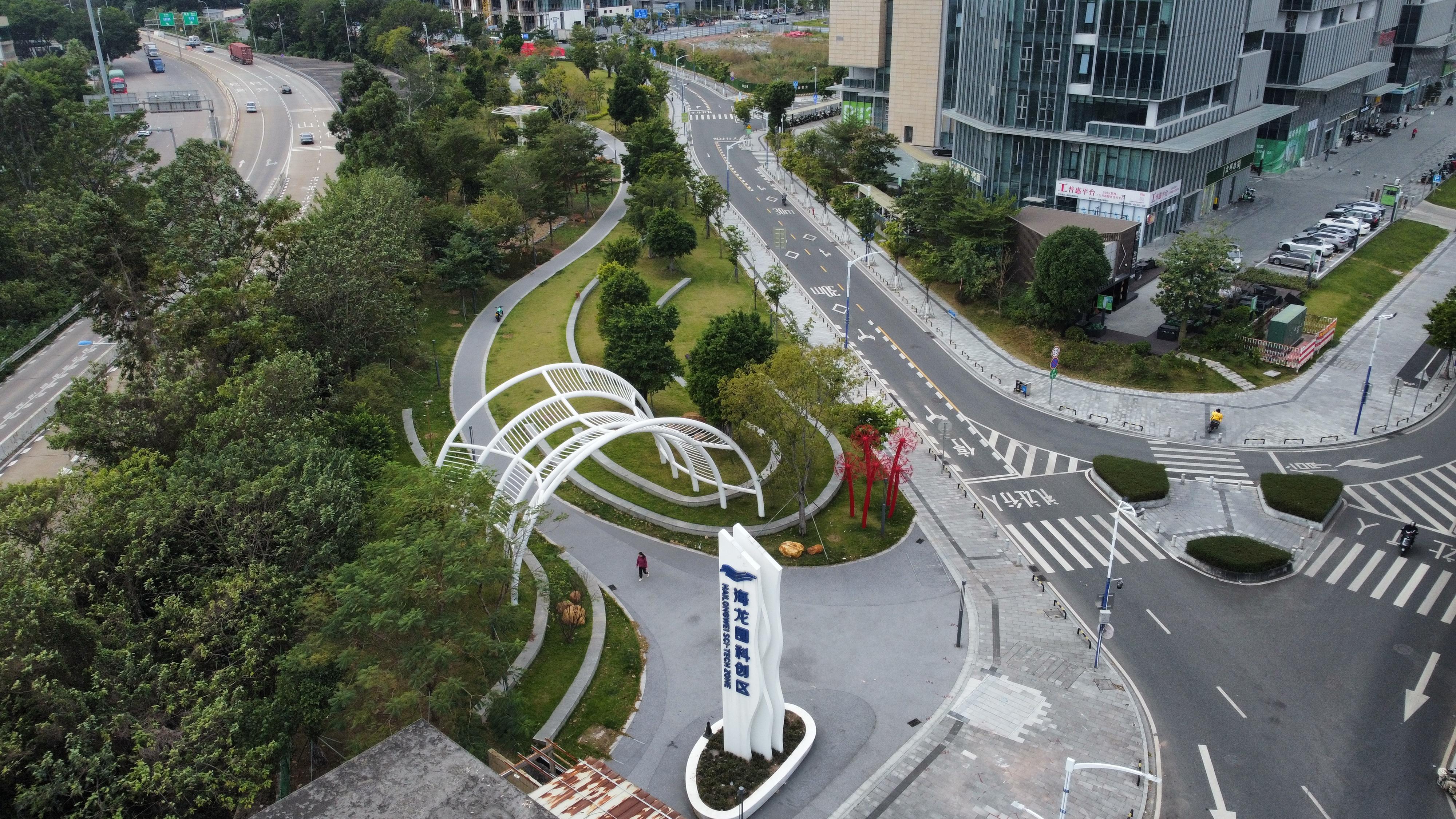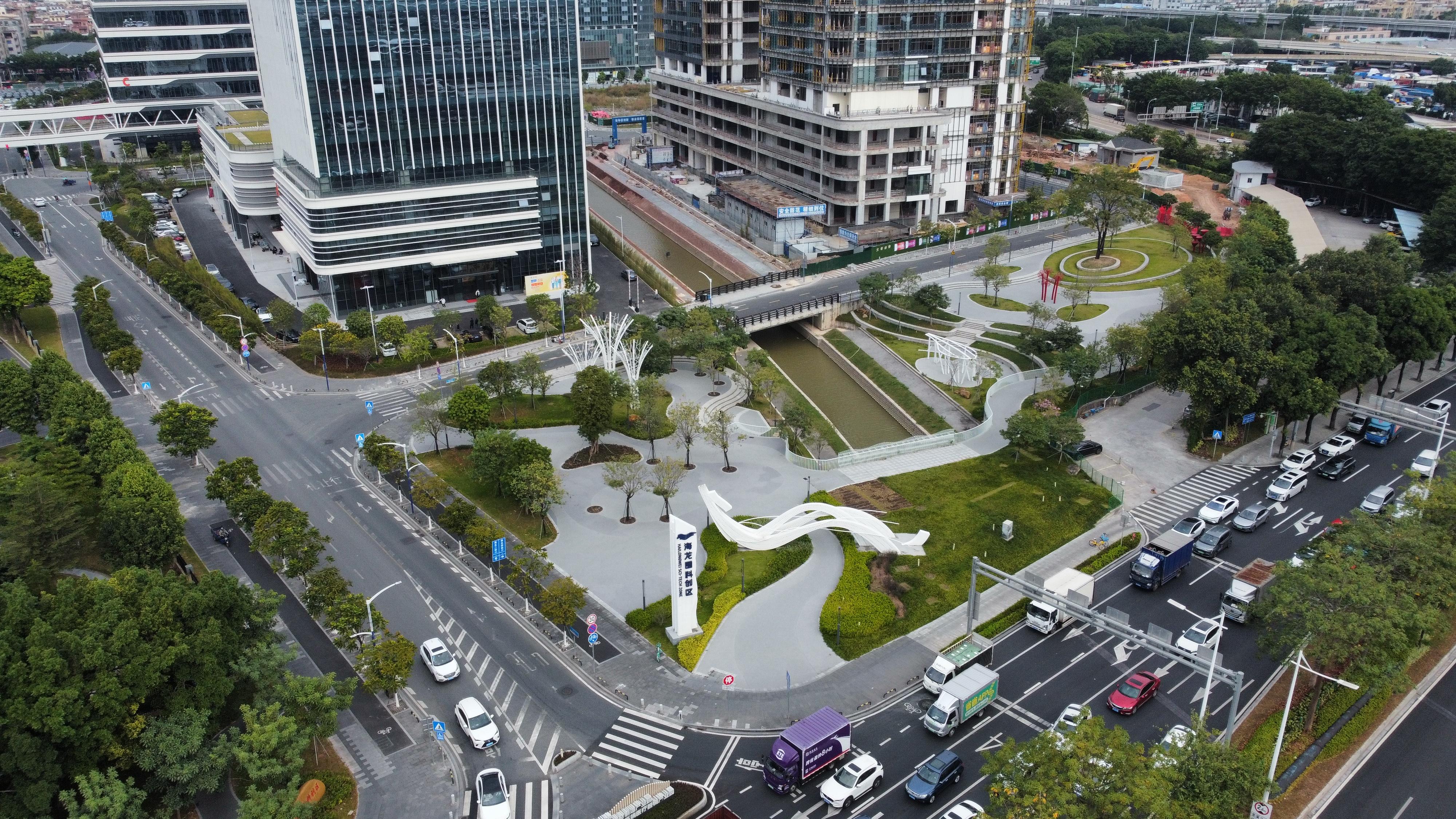 产业发展,道路先行。海龙科创区首个完成封顶的项目侨银大厦在2021年初封顶,而白鹤沙、龙溪大道两个地块的市政配套工程分别在2020年8月、9月启动。彭军介绍,从2020年9月开建,到2024年6月最后一条路完工,他们克服了产业楼宇、配套道路同步交叉施工的困难,在龙溪大道地块新建成7条市政道路,包括海北一、二、三、四街4条南北向道路,龙溪中路,海北一、二横街3条东西向道路,总长3.3公里。“‘四纵三横’织起园区路网,能满足园区企业货物运输、员工通勤以及商务往来需求,为周边大参林运营中心、广州宏信悦谷等项目,以及广州市激光与增材制造产业园等载体提供了顺畅的交通保障,同时有效缓解龙溪大道的拥堵。”他表示。