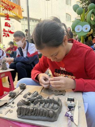 海珠区文化分馆、葆光美陶文化传承馆馆长郭晓东点评认为,孩子们的构思紧扣“筑牢共同体,共育民族花”主题,技法上运用了盘筑法、卷筒的泥筒法等,工艺符合陶艺创作原理,作品可烧制,显示出学生对陶艺和陶文化的扎实认识。