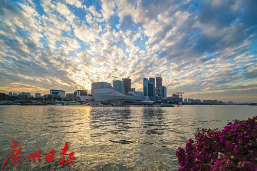 11月22日,白鹅潭上空,鱼鳞云布满蓝天。