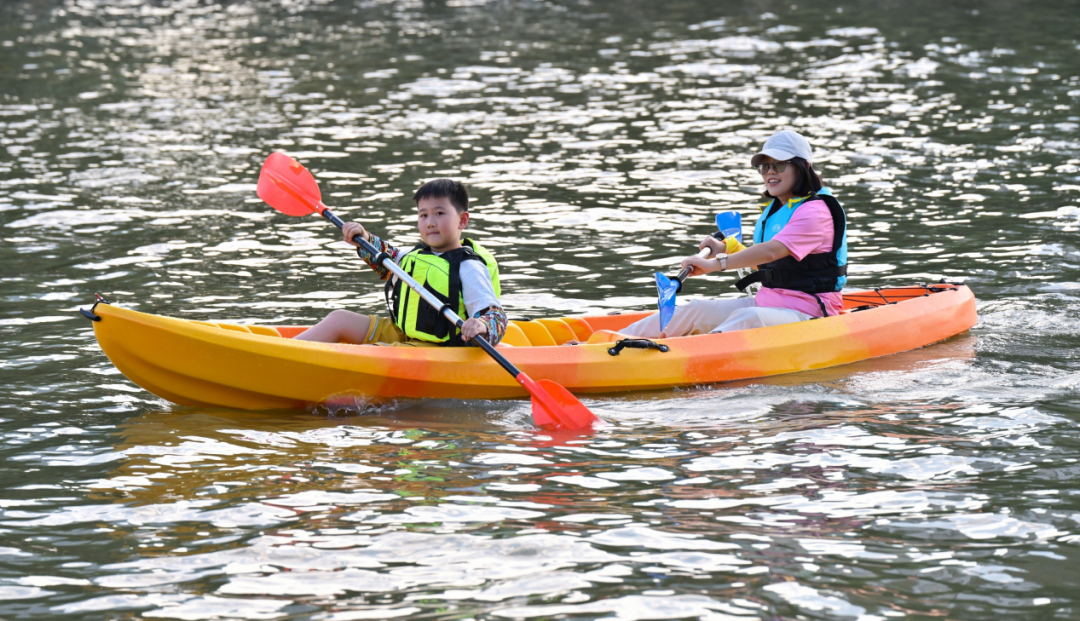 全运IP吉祥物的闪现加入,为本次活动注入了更强的潮流感与互动性。活动期间,喜洋洋和乐融融闪现巨人帆艇汇1号码头全运主题打卡区,与市民游客近距离互动合影,传递“全民全运、共享健康”的运动理念。市民可在体验多元水上项目的同时,与吉祥物同框打卡,解锁“运动+IP”双重乐趣,让全运热度在都市滨水空间持续延续。此外,码头还延续嘉年华期间的沉浸式体验模式,结合黄埔涌生态圈与琶洲CBD天际线,让市民在运动休闲中感受“自然+都市”的双重景观魅力,深化“千年黄埔涌,广州水上会客厅”的品牌认知。