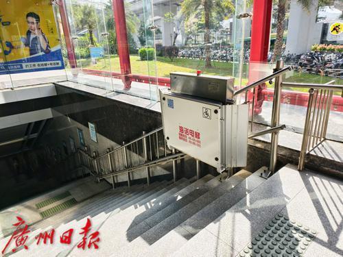 白云大道北站毗邻广东省工伤康复医院,特地配备了两套楼梯升降机。