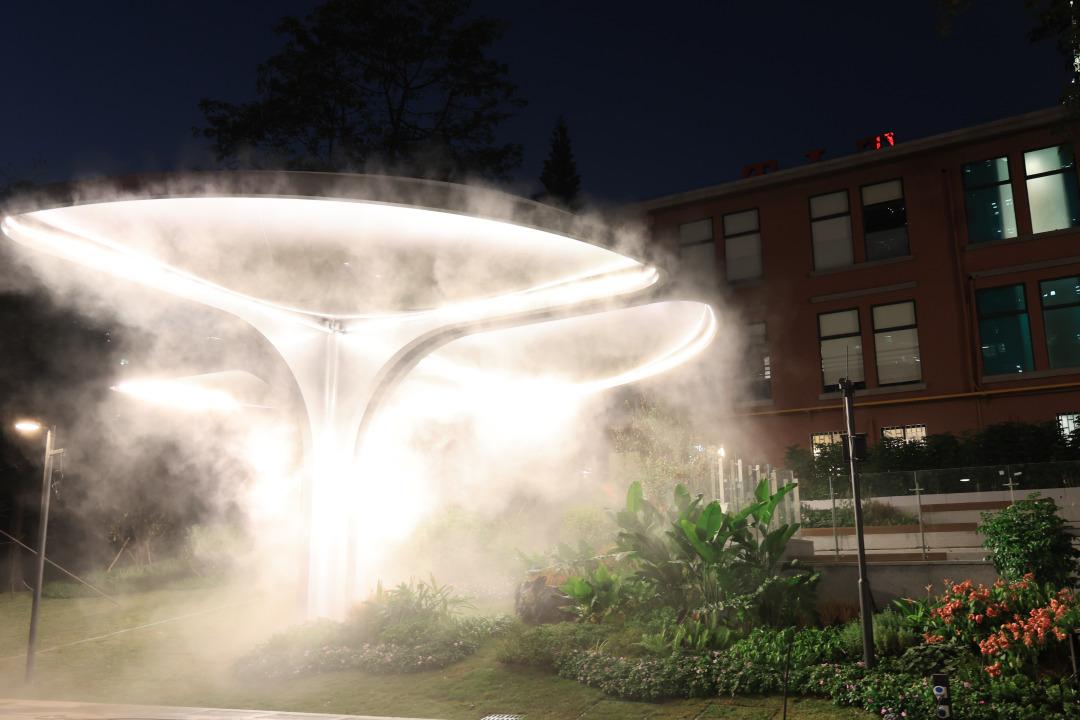 艺术台地区在夜间化身灯光舞台,雾森系统释放的细腻水雾形成“雾面天幕”,激光投影在水雾之上,将呈现裸眼3D视觉效果,为新中轴增添夜间景观的全新“打卡点”。