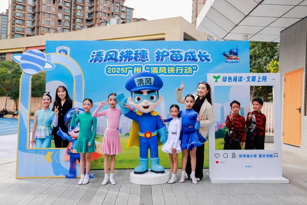清风扬正气,粤韵伴成长。11月27日,黄埔区科学城小学(南校区)变身充满惊喜的“护苗乐园”,“清风拂穗 护苗成长”2025广州“清风侠护苗”嘉年华在此盛大启幕。按照全省2025年“护苗·绿书签行动”系列宣传活动的总体部署,广州落地同步开展“6+6”“清风侠行动”系列活动。