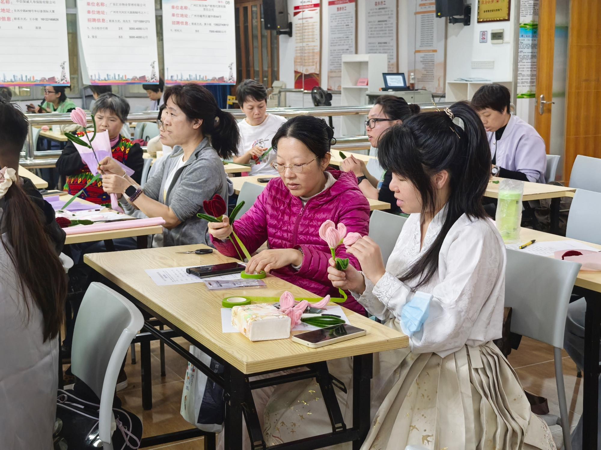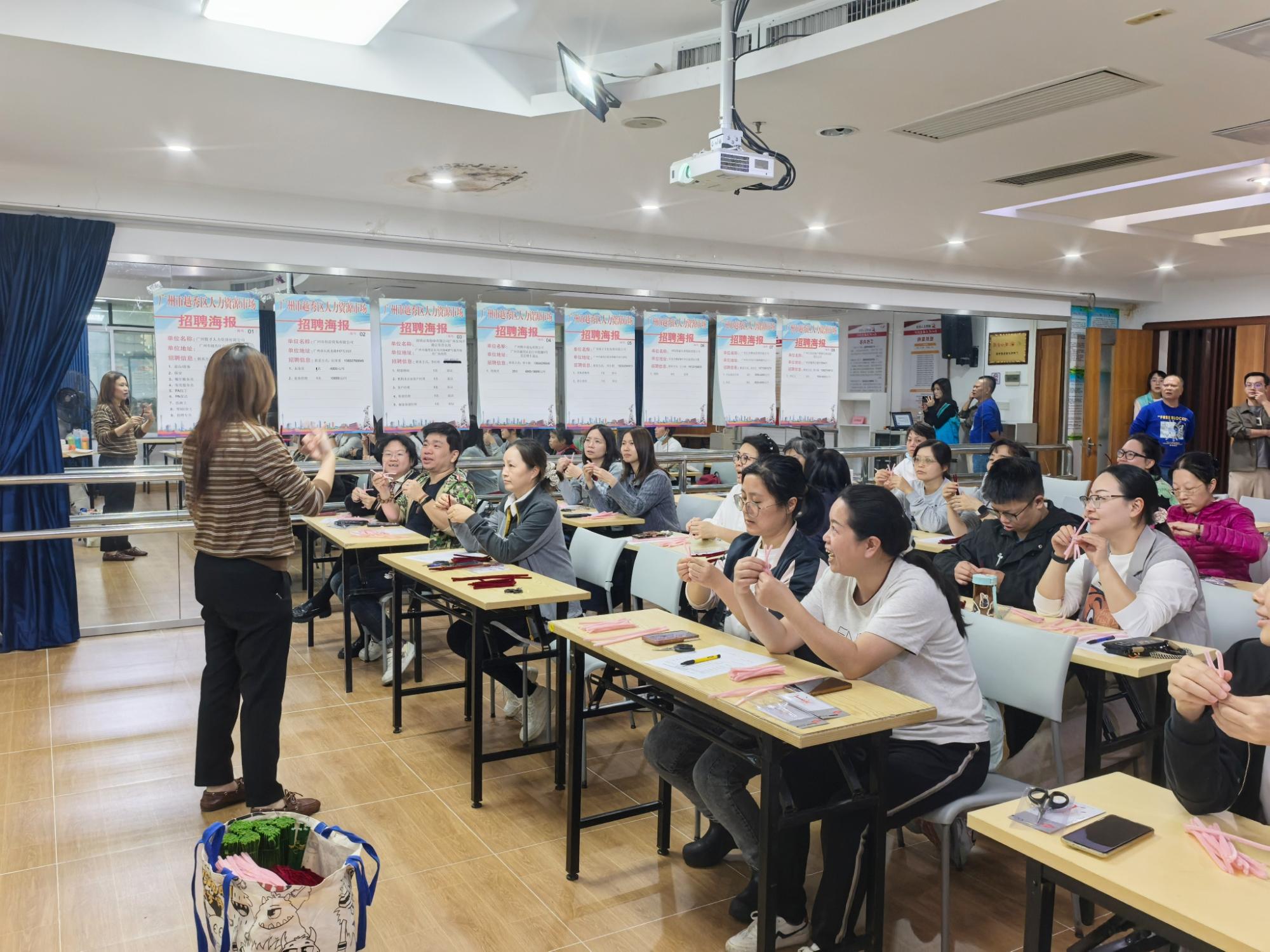 为深化“百千万工程”引领作用,创新就业服务模式,进一步提升辖区群众创业就业技能,拓宽就业渠道,11月25日,由越秀区人民街道办事处主办,人民街道党群服务中心、广州市友谊对外服务有限公司、越秀区新业态综合服务中心、人民街道就业驿站、人民街青兰里社区承办的“强化技能人才支撑 拓宽更高质量就业”——人民街2025年技能培训进社区暨“零距离”专场招聘会在人民街党群服务中心开展。此次活动旨在通过趣味手工体验与就业服务相结合的方式,为社区居民,特别是失业人员和低收入群体,提供技能提升与就业对接的新平台。