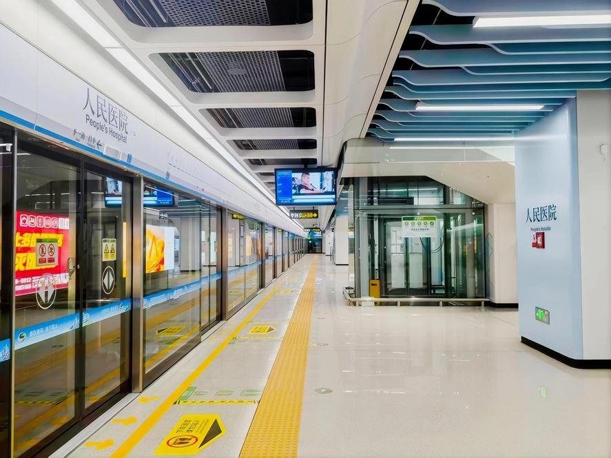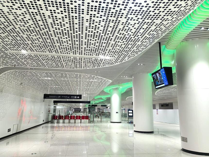 东莞地铁1号线是东莞市首条全自动驾驶地铁线路,最高时速可达120公里,对轨道平顺性和道床减振提出了更高要求。其中,中铁三局承建元美站、中心广场站及元美站—中心广场站—市民中心站—立新站“二站三区间”的土建工程和全长28.5公里的铺轨工程,以及人民医院站、曲海站等5座车站的机电安装和站内装修施工等建设任务。建设团队采用高速铁路的精密测量轨道控制网技术,将轨道线路平面偏差控制在1毫米左右,采取敏感路段减振措施,提升列车运行安全性和旅客乘坐体验感。