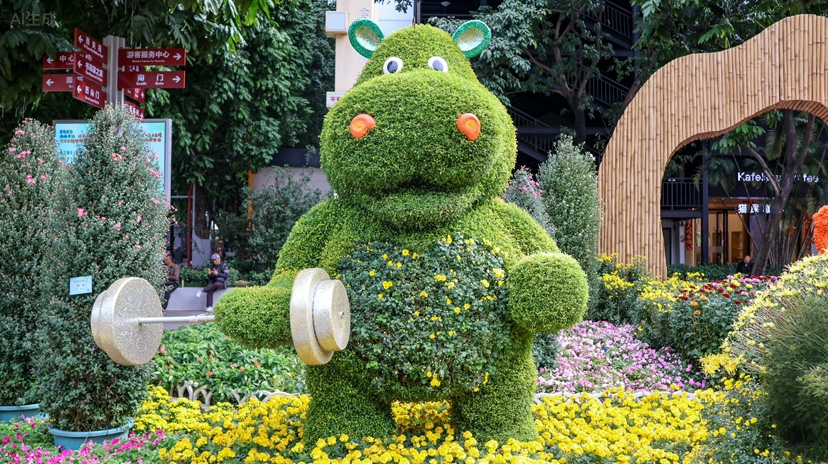 今年各主题景组的小动物成为游客们最为喜爱的拍照点。随着菊花徐徐盛放,原来身披绿衣的小动物们换上了黄色的衣裳,更显可爱。特别是《萌动菊园》景组中,举重的河马、奔跑的猎豹、踢球的松鼠等动物,身上菊花扎作的部分渐渐开花“换衣”,更显呆萌惹人喜爱。此外,还有长颈鹿、孔雀、天鹅、青蛙、斗牛等众多用菊花扎作的小动物,也都纷纷换上了金黄的“新衣”,让广州的冬日暖意融融。