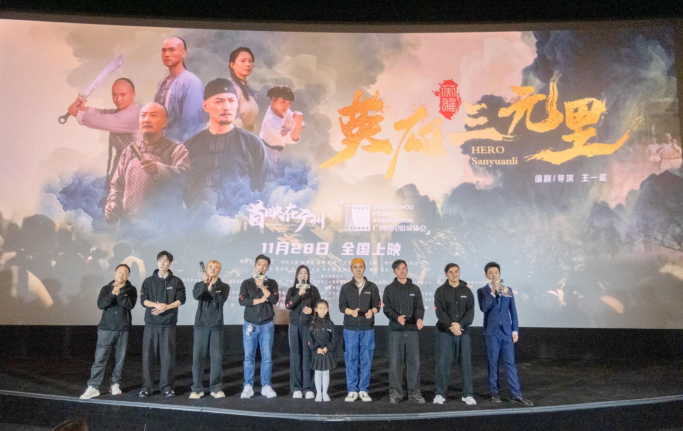 11月27日晚,“首映在广州”粤产历史题材电影《英雄三元里》广州首映活动成功举行。导演王一诺携演员严屹宽、刘秋实、方洋飞、王禹森、李圣雄、马铁摩、龚秩、杨环宇等主创,与现场观众共同观赏了这部聚焦1841年三元里民众抗英斗争的平民史诗,并在映后展开深入交流。影片以独特的平民视角和深厚的历史底蕴引发观众强烈共鸣。