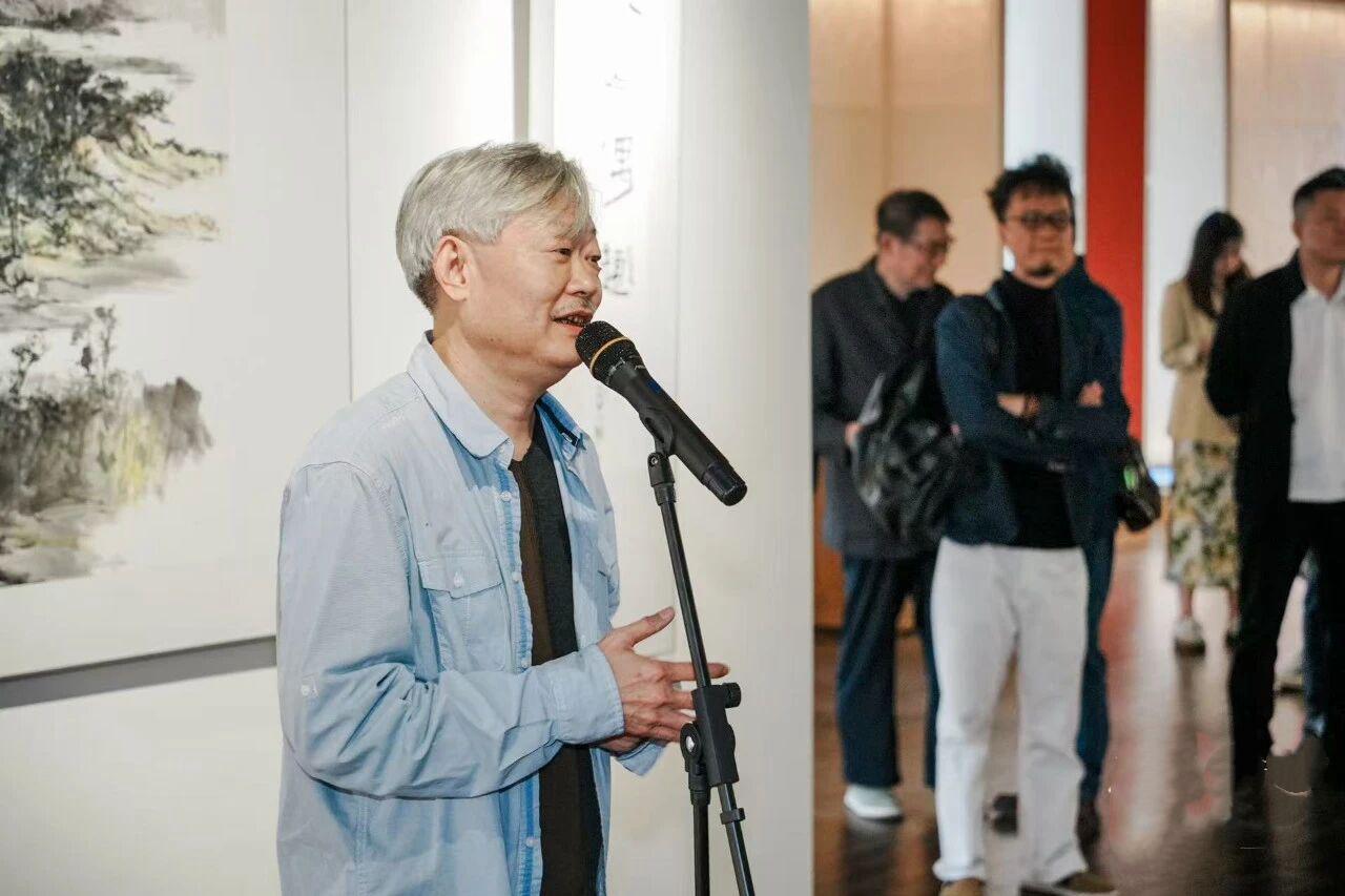 现场,广东省文联原主席刘斯奋首先致辞,他对羊草的艺术成就表示高度认可。广东省美协副主席、广州画院院长宋陆京则从学术与创作角度肯定羊草在艺术语言上的持续探索与突破。羊草在致辞中特别感谢郭莽园先生为展览题字,同时也对各位嘉宾的到来与支持表示谢意,并分享自己多年来的创作体悟。
