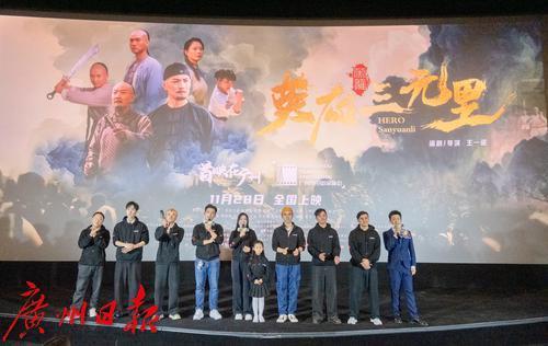 11月27日晚,本土重大历史题材电影《英雄三元里》,在故事发源地广州举办“铭记英魂,守护家国”主题首映礼。影片真实再现1841年三元里及周边103乡民众手执锄头扁担,自发抗英的壮烈史诗,深深触动了这片土地上,“家乡人”后代的集体记忆。 青年导演王一诺携领衔主演严屹宽,特邀主演王光辉,主演刘秋实、方洋飞、王禹森、李圣雄、马铁摩、龚秩、杨环宇等主创人员集体亮相,与现场观众深度回溯1841 年103乡百姓自发抗英的壮阔历程,现场座无虚席,观众们反响强烈。影片中三元里百姓挺身而出的滚烫血性,英勇无畏的抗争精神,让不少观众湿了眼眶。