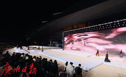 11月27日晚,白鹅潭畔灯光璀璨,珠江潮涌。在大湾区艺术中心外广场,2025中国(广州)国际时尚产业大会开幕式暨花城时尚之夜盛大启幕。