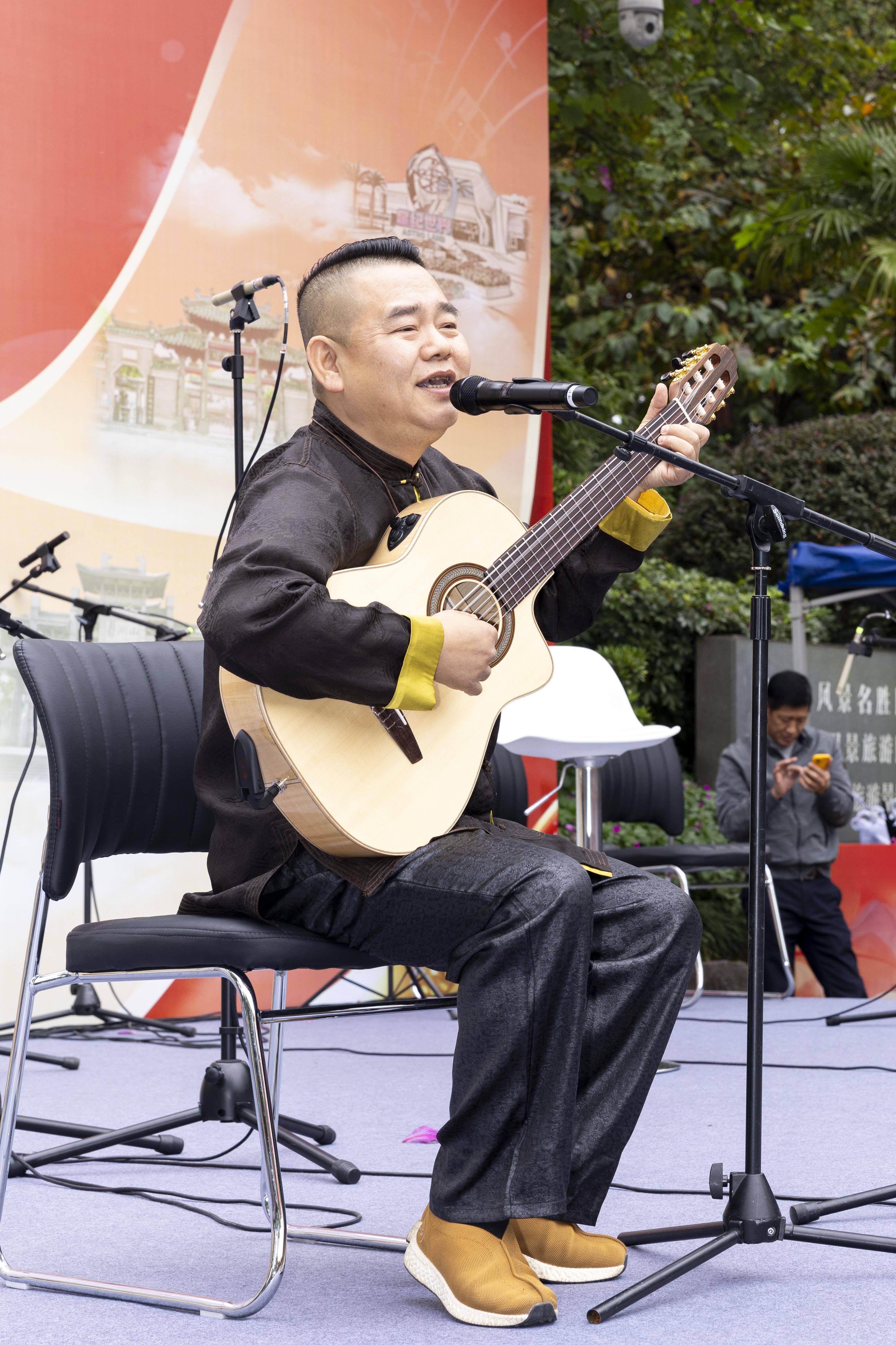 广东民族乐团一级演奏员、广东吉他研究会会长殷飚带来了吉他独奏《彝族舞曲》《九百九十九朵玫瑰》。其中,《彝族舞曲》是著名民族音乐家王惠然创作的琵琶独奏曲,后来殷飚将其改编成吉他独奏曲,成为一首在吉他界中颇有影响的吉他名曲。