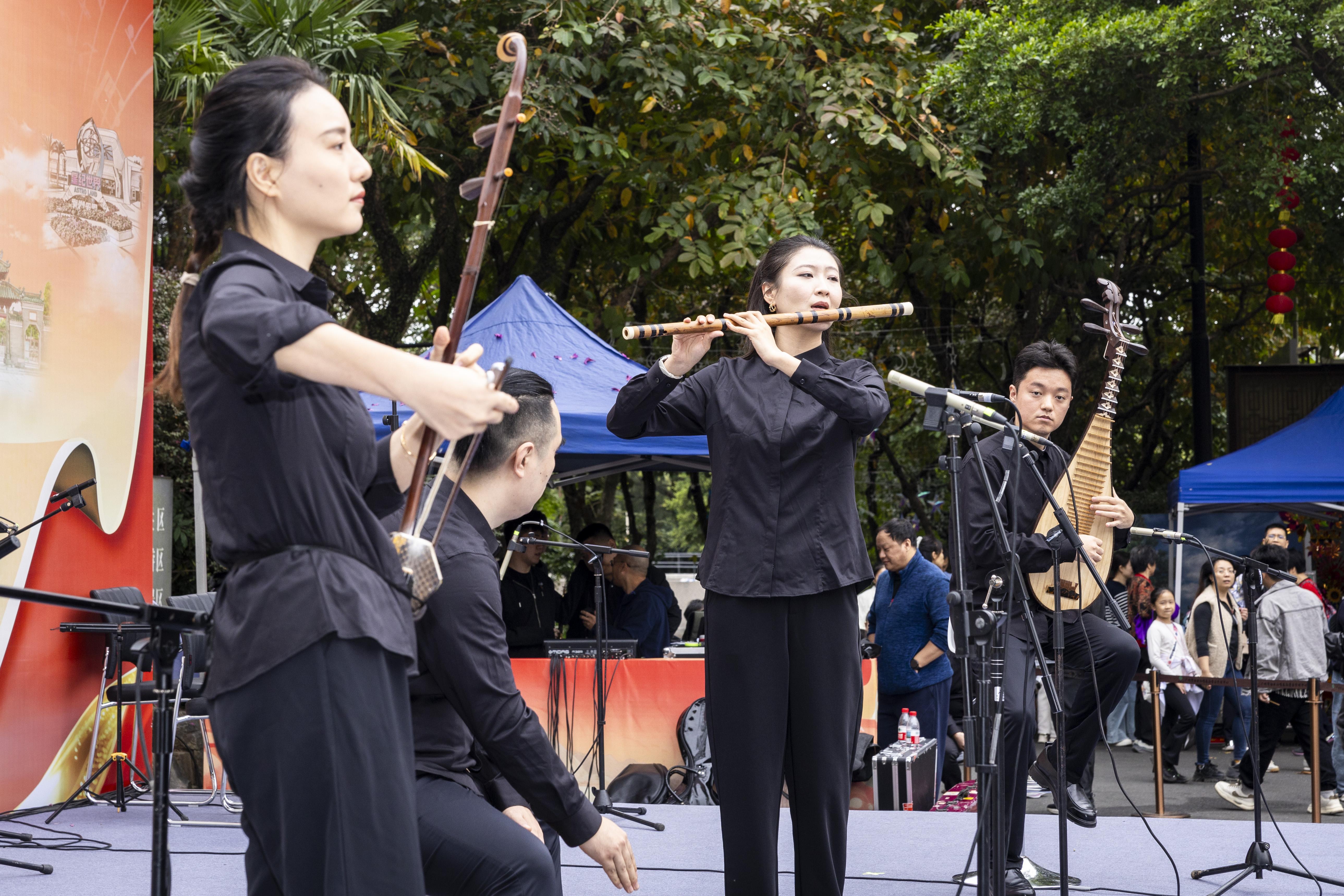 11月30日的《开幕盛典》,以“快闪+开幕音乐会”的形式,用国乐唤醒老广心中的音乐记忆。著名笙演奏家、一级演奏员、广东民族乐团副团长车永强担任讲解,携乐团多位一级演员以及优秀青年演员,以“边演边讲”的形式,为市民游客带来了一场户外国乐盛宴。