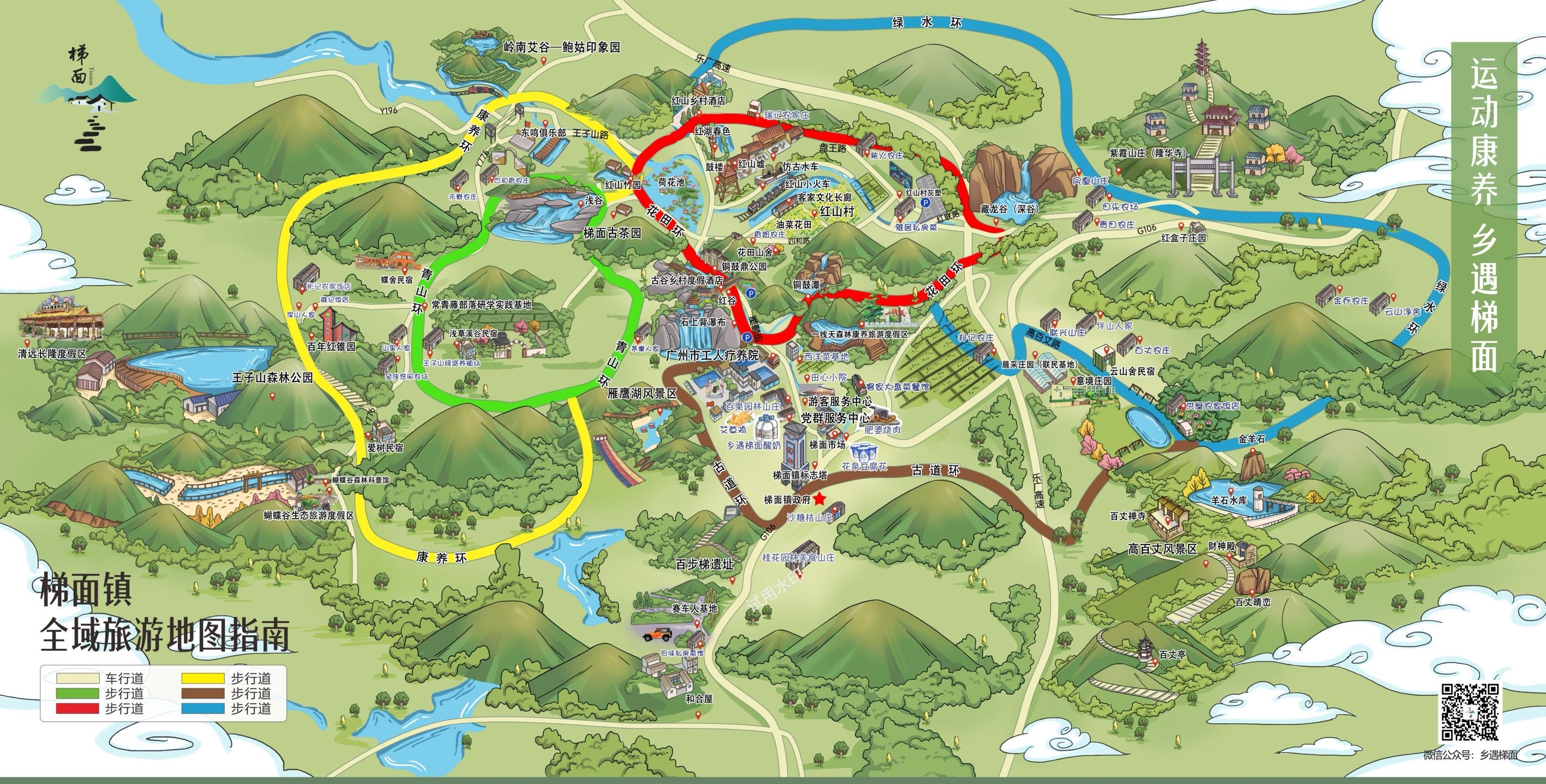 青山为纸,步道为笔。一幅绵延83公里的壮丽画卷,正在花都区梯面镇的绿水青山间徐徐铺展。当下,蜿蜒于峰峦叠翠间的“五环步道”,正以运动为旋律,以文旅为和声,奏响一首将“绿水青山”转化为“金山银山”的动人乐章,为梯面“百千万工程”建设探索出一条充满活力的新路径。