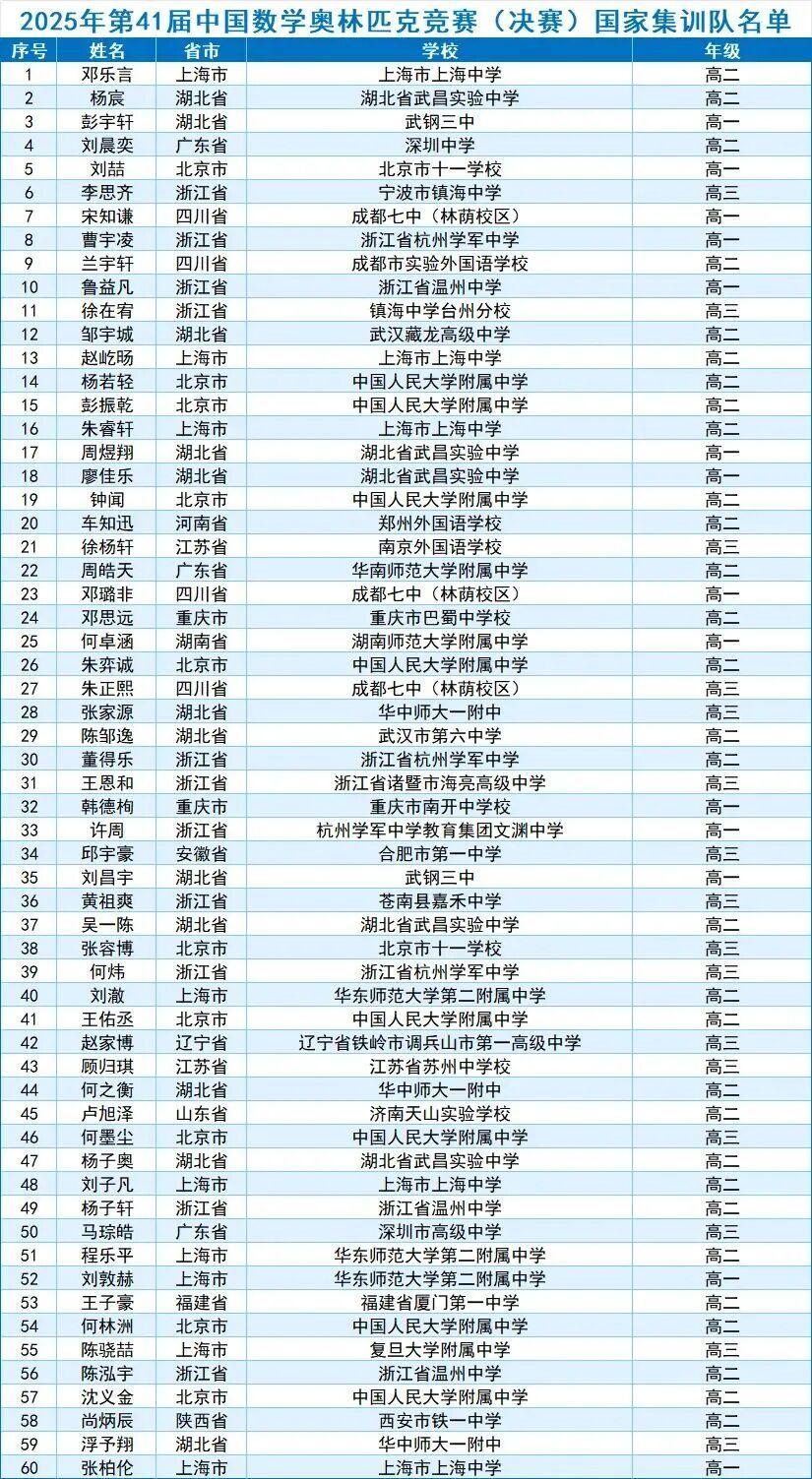据悉,本届竞赛共有710名学生获奖,其中223名学生获得金牌,其中前60名选手入选国家集训队,并获得清华、北大保送资格;293名同学获得银牌,194名同学获得铜牌。