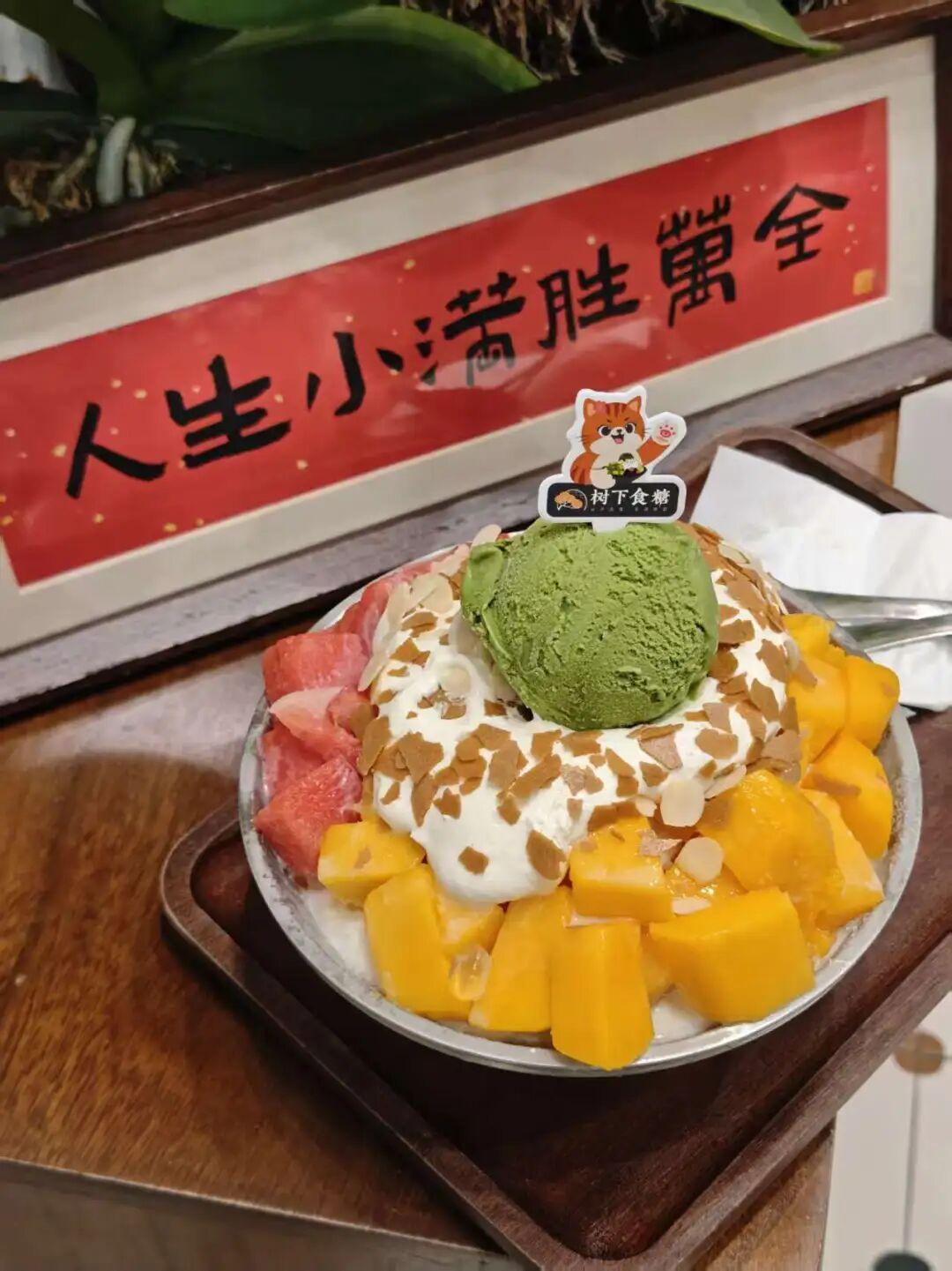 不同于传统广式糖水,“树下食糖”主打港式风味,冰品尤为出众,手工自制的意大利式雪糕更是店内招牌。为了保证品质,创始人特意学习专业制作技艺,购置进口设备,每日现打现做雪糕,就连脆筒都亲手烤制,刚出炉的脆筒香气弥漫在店里,吸引着不少食客慕名而来。“好食材只需简单烹饪,不用繁杂添加。”秉持着这样的理念,她坚持雪糕无任何添加剂,牛奶含量充足的冰品融化速度虽快,却带着纯粹的奶香,就连色彩都源自食材本身——开心果的绿、芒果的黄,都是自然赋予的模样,就连杨枝甘露的口感会随芒果季节变化,也绝不靠添加物修饰风味,这份坚守让不少妈妈每周都会带孩子光顾,甚至有外国友人专程前来品尝。