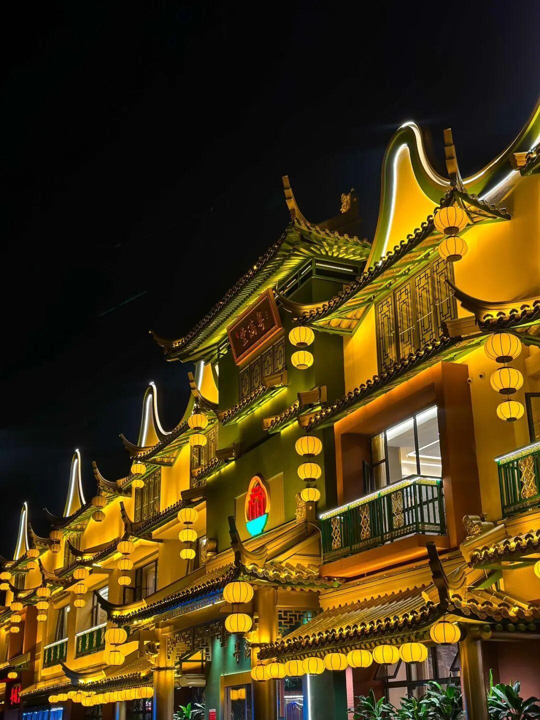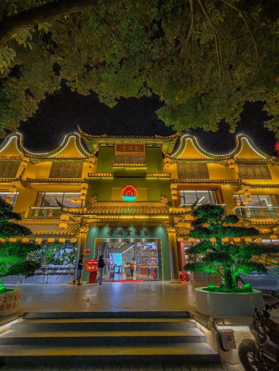 “粤满堂”扎根于番禺沙头街横江村,紧邻风景秀美的大夫山,得天独厚的地理位置,让食客在寻味之余,还能近赏山林意趣。每到夜晚华灯初上,餐厅独具特色的岭南村落式建筑便被暖黄灯光点亮,飞檐翘角、琉璃纹饰在夜色中愈发灵动,仿佛将百年广府风情凝成了一幅可触可感的立体画卷,未入店已让人对这份地道粤味心生向往。