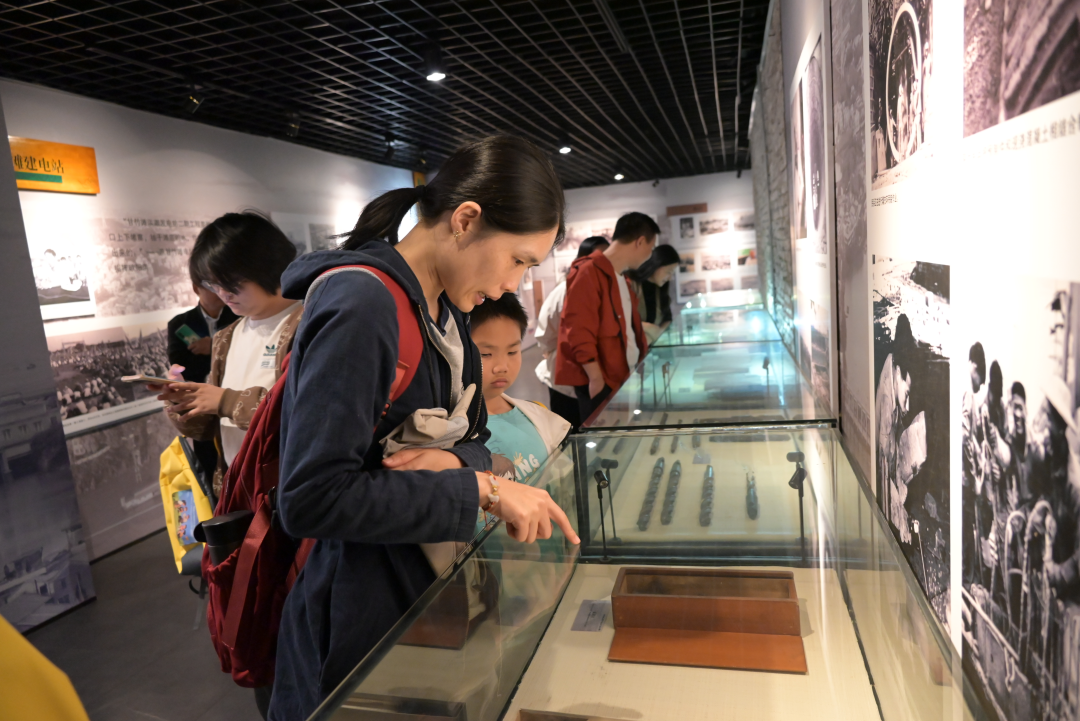 在文化探索环节,亲子家庭来到甘竹滩洪潮发电站旧址,工作人员结合实景,生动讲述20世纪70年代龙江人民“土法上马”、自力更生建设电站的艰辛历程,先辈们“敢为天下先”的精神在孩子们心中悄然生根。在甘竹滩历史文化展馆,丰富的展品与影像资料系统呈现了电站的发展脉络。孩子们好奇观察,家长轻声讲解。