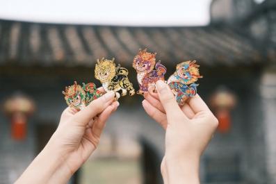 在创作中,队员们都觉得传统猫头狮的造型很有特色,但对于大众而言可能还是会觉得有点距离感,试图进一步让它“更可爱、更接地气”,于是提取了猫头狮的经典轮廓,再加上软萌的表情和圆润的线条,“绒小狮”就这么诞生了。不仅保留了“驱邪纳福”的传统寓意,还做成了表情包、贴纸、钥匙串这些年轻人喜欢的小物件。