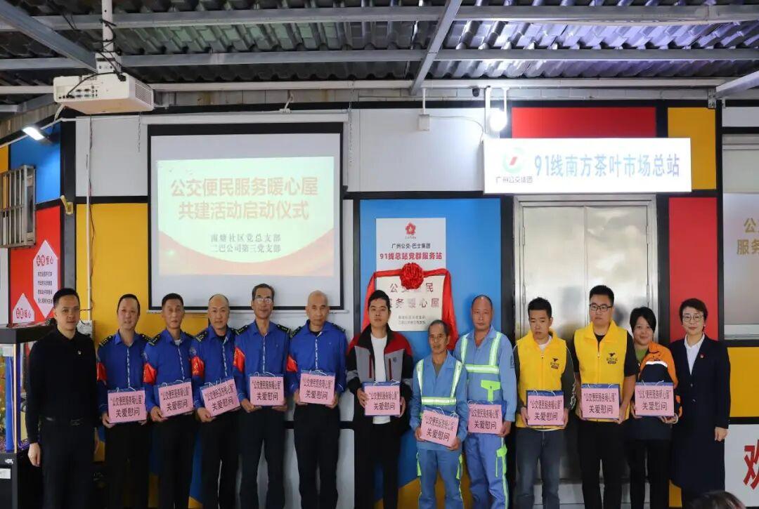 为关心关爱新就业群体,深化党建引领基层治理实效,将服务民生落地实处,12月1日上午,荔湾区石围塘街道南塘社区党总支部联合广州市第二巴士有限公司第三党支部,在91线南方茶叶市场总站举行“公交便民服务暖心屋”揭牌仪式。本次活动以党建共建为纽带,为户外劳动者打造暖心“户外之家”。