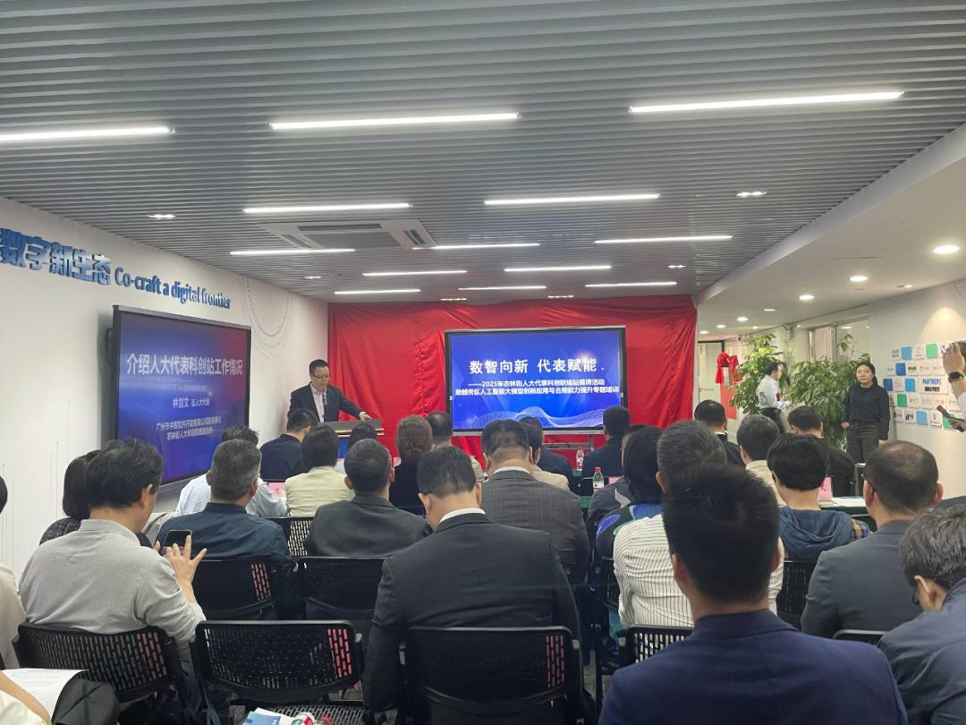 2025年农林街人大代表科创联络站揭牌活动暨越秀区人工智能大模型创新应用与合规能力提升专题培训现场。