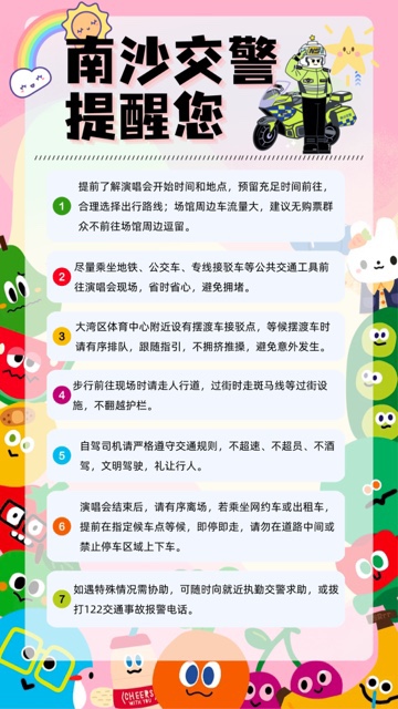 五月天“回到那一天”25周年巡回演唱会将于12月5日、6日、7日、12日、14日、15日共计6日在大湾区文化体育中心举行,开放检票时间为演出当天15:30。为确保活动安全顺利进行及活动期间道路交通安全、畅通、有序,公安机关将对场馆周边路段实行临时交通管控,现将有关事项提示如下: