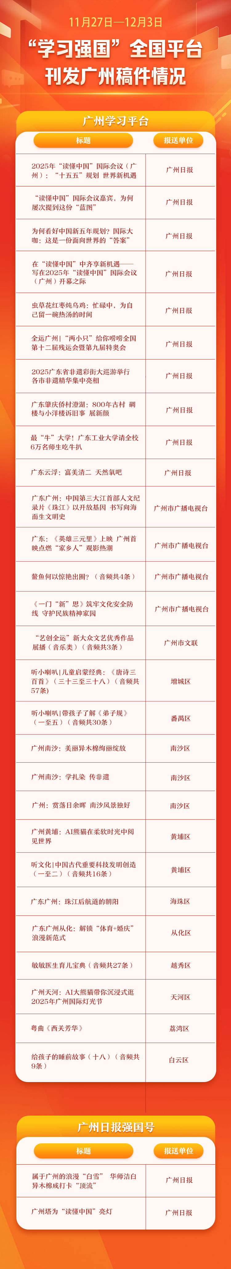 “学习强国”广州热榜(11月27日—12月3日)丨2025年“读懂中国”国际会议(广州):“十五五”规划 世界新机遇
