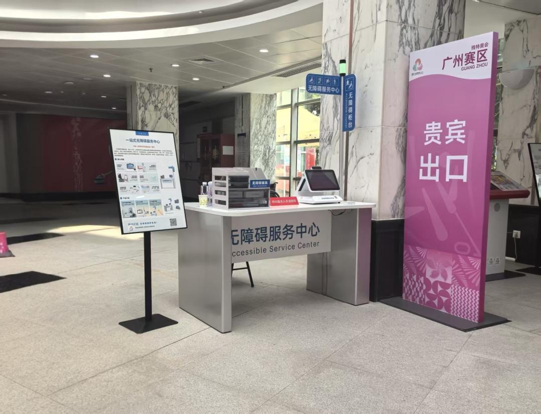 低位服务台、手语翻译屏、明盲导视图……如今,在即将迎来残特奥会赛事的多个体育场馆,都很容易见到新增的无障碍设施。无障碍环境的全面升级正是此次广州办赛事的一大亮点。而这背后同样汇聚了不少本土社会力量,来自天河区的华途科技便是其中之一。
