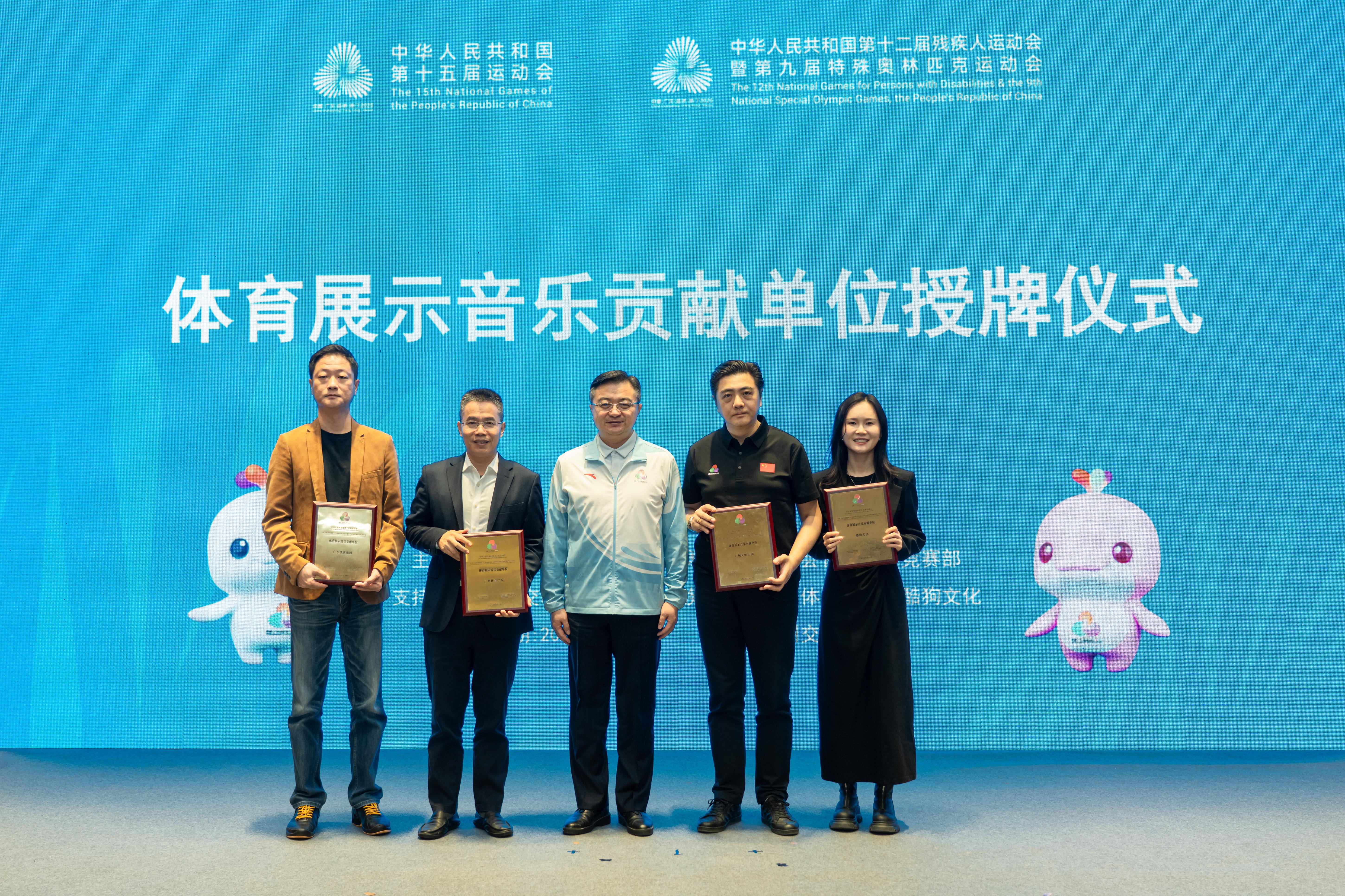 12月4日上午,第十五届全国运动会和全国第十二届残疾人运动会暨第九届特殊奥林匹克运动会体育展示音乐贡献单位授牌仪式在广州交响乐团演奏厅举行。仪式现场,广州交响乐团、广东民族乐团、广州体育学院、酷狗文化四家在赛会体育展示音乐库建设中做出杰出贡献的单位获颁荣誉牌匾。