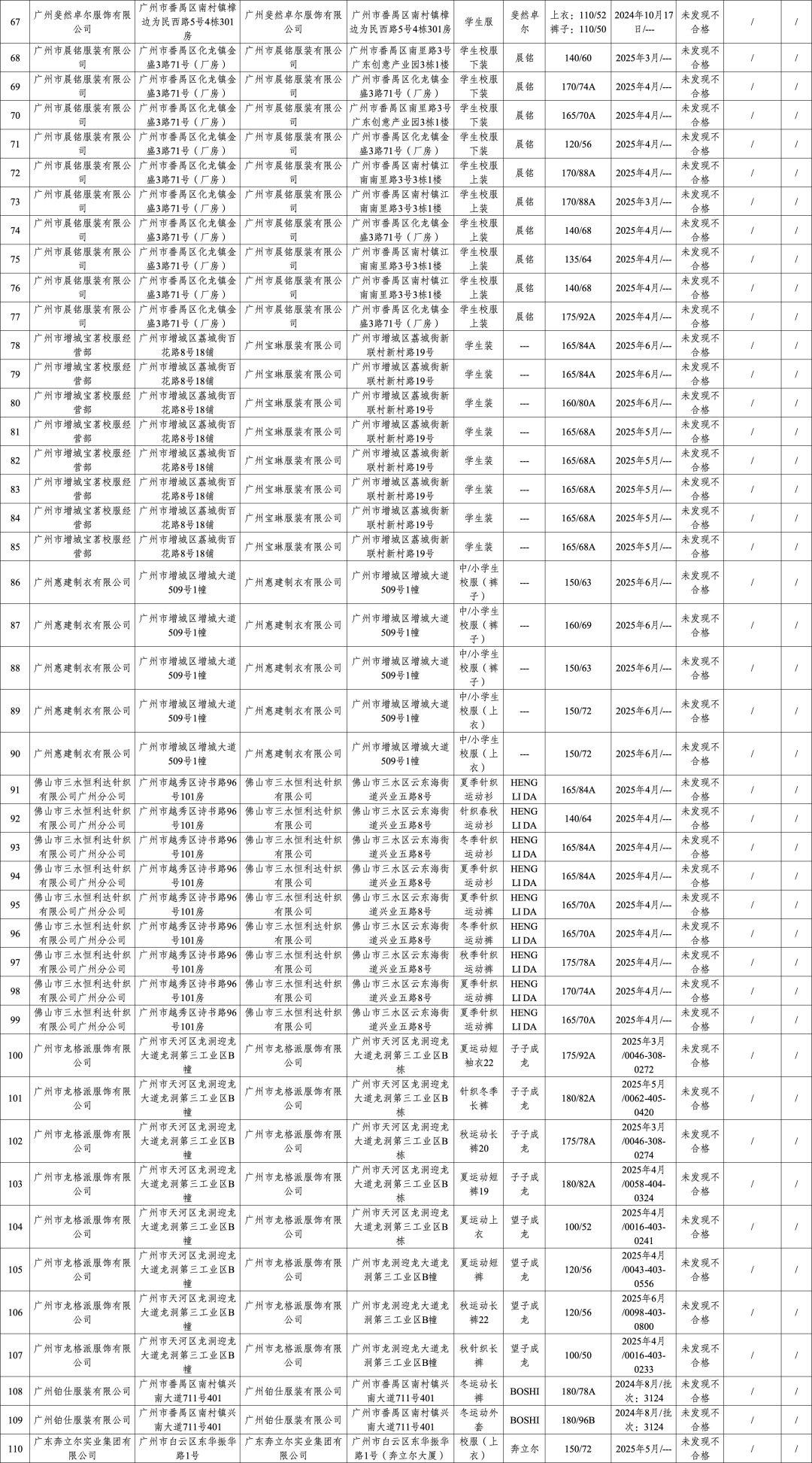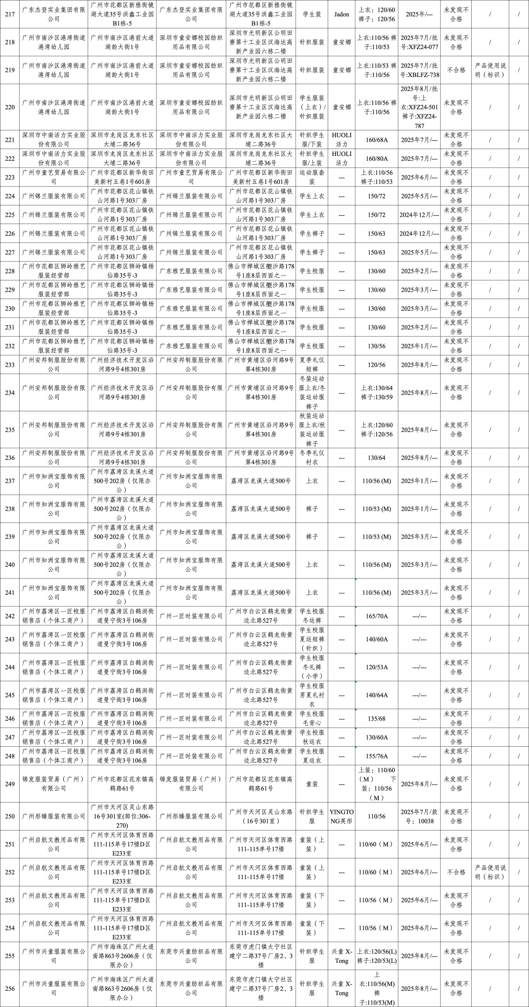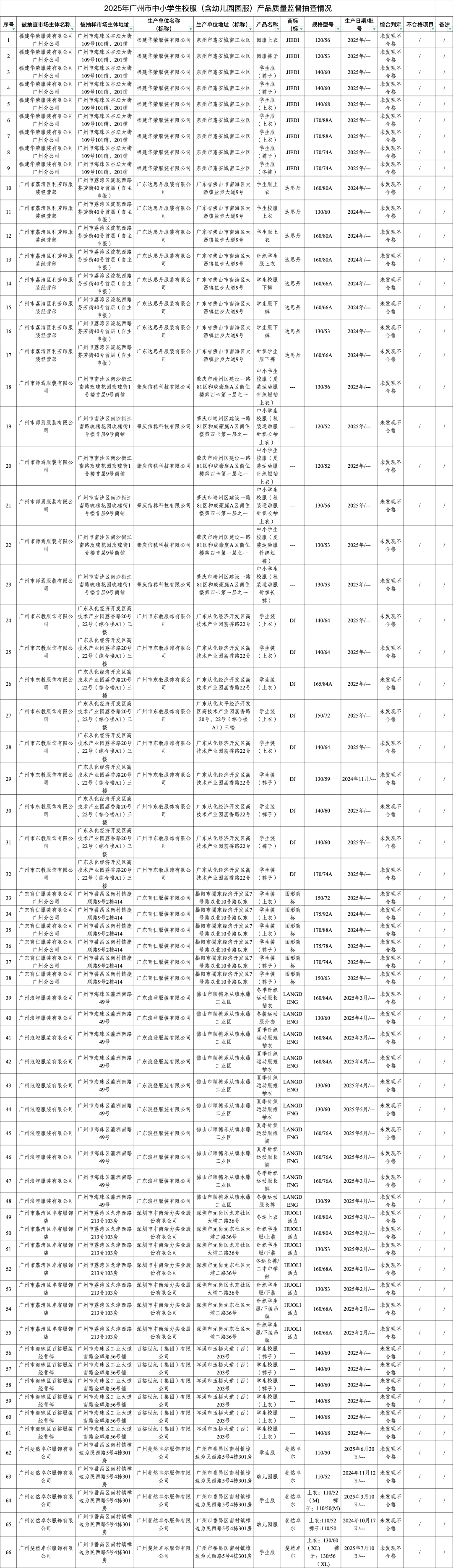2025年广州市中小学生校服(含幼儿园园服)产品质量监督抽查情况具体如下: